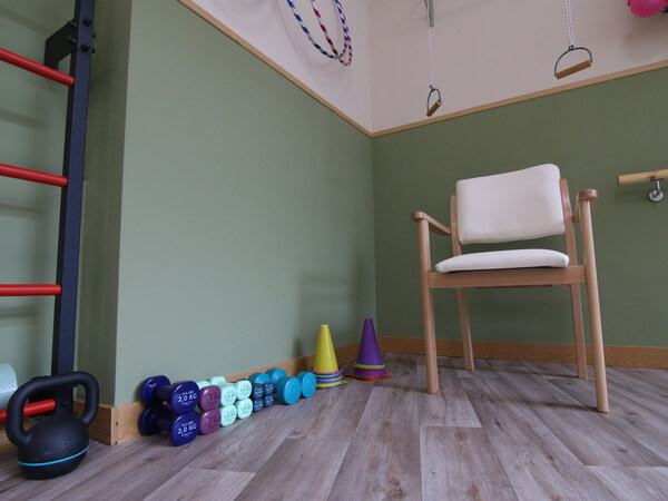 Baños adaptados, zona de juegos, comedor, área de ejercicio, camilla, espacio de descanso, zona de televisión, amplios ventanales, armarios, tocadores, casilleros y mucho más.